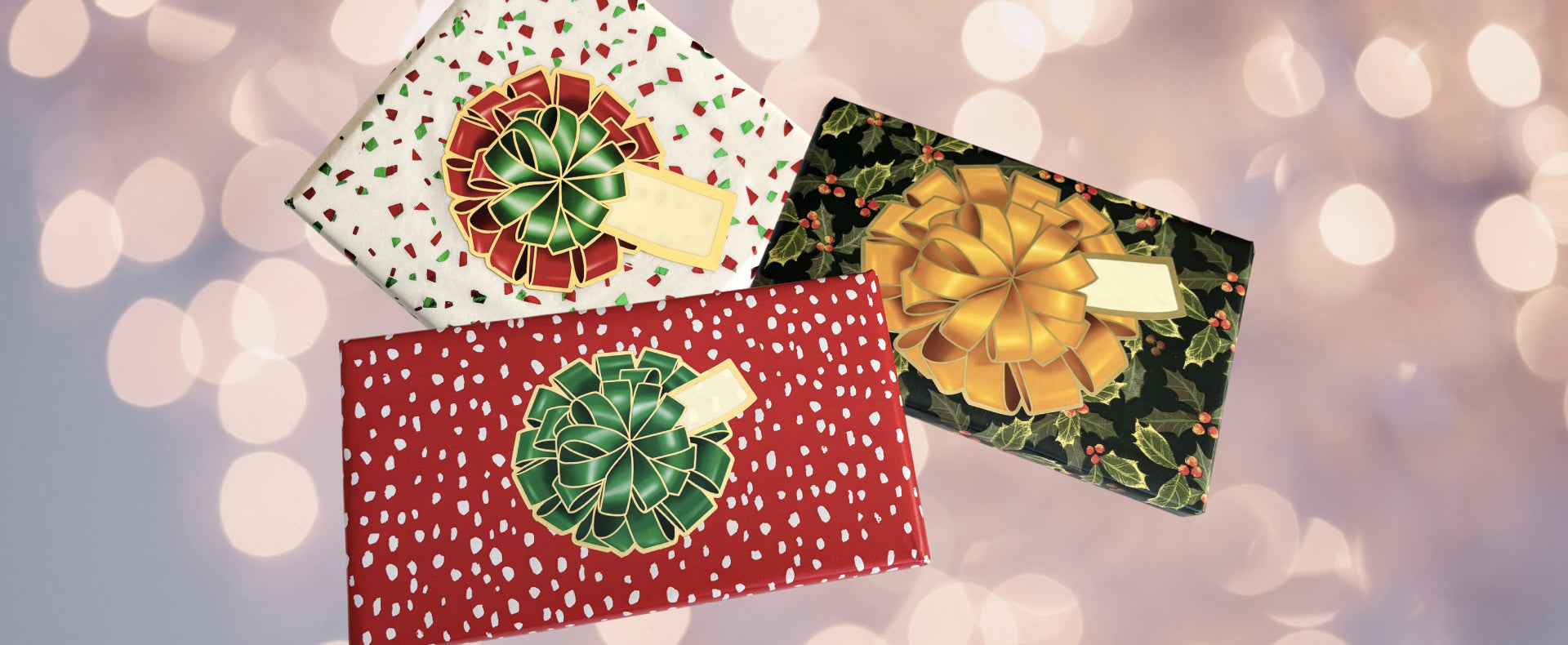Brilliant Colors: Red, Green, Red/Green Combo and Gold with beautiful gold foil accents.
